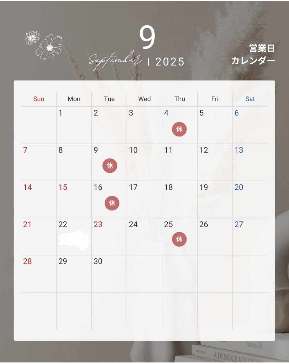 > 9月の店休日